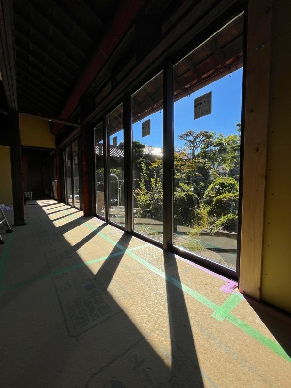 長い年月、お家を支えてきた柱や梁、鴨居が味わいのある深い色に蘇りました。