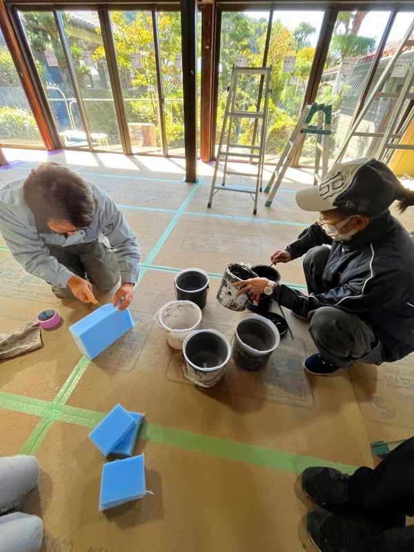 テープで印をつけた箇所を手分けして塗っていきますよ~!