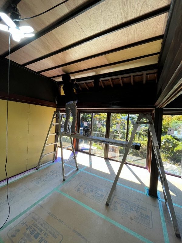 和室の天井の雰囲気を残したいとのご希望でしたので、再塗装します。