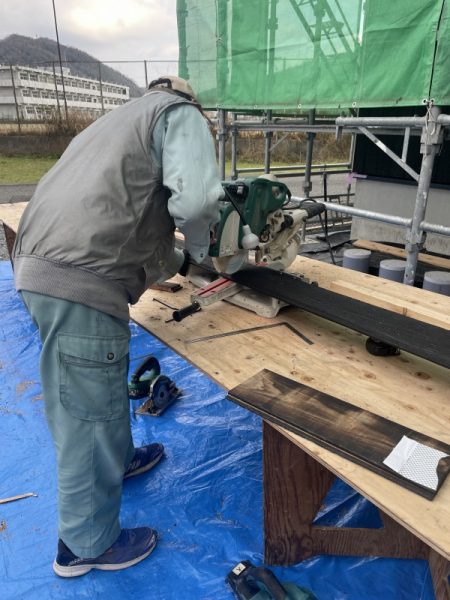 屋根勾配に合うようにカットしていきます。