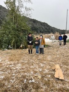 雪と風の中、豚汁とぜんざいも作りました