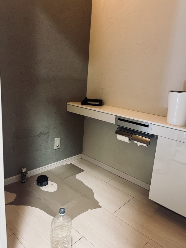ショールームのトイレが故障??便器から水漏れをして床がフカフカになってしまいました。