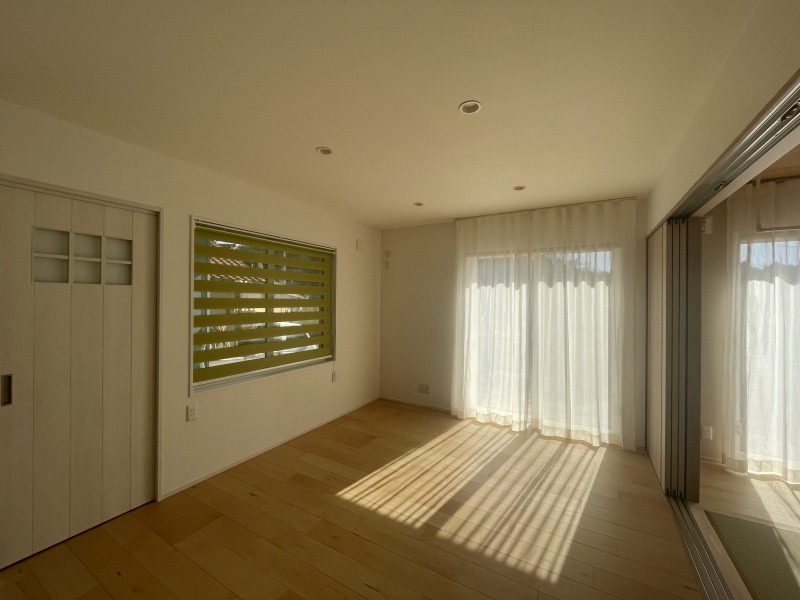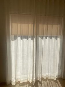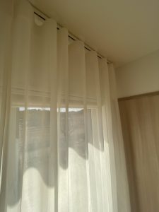 窓枠内にロールスクリーン+天井付けのレースカーテンの組み合わせです。